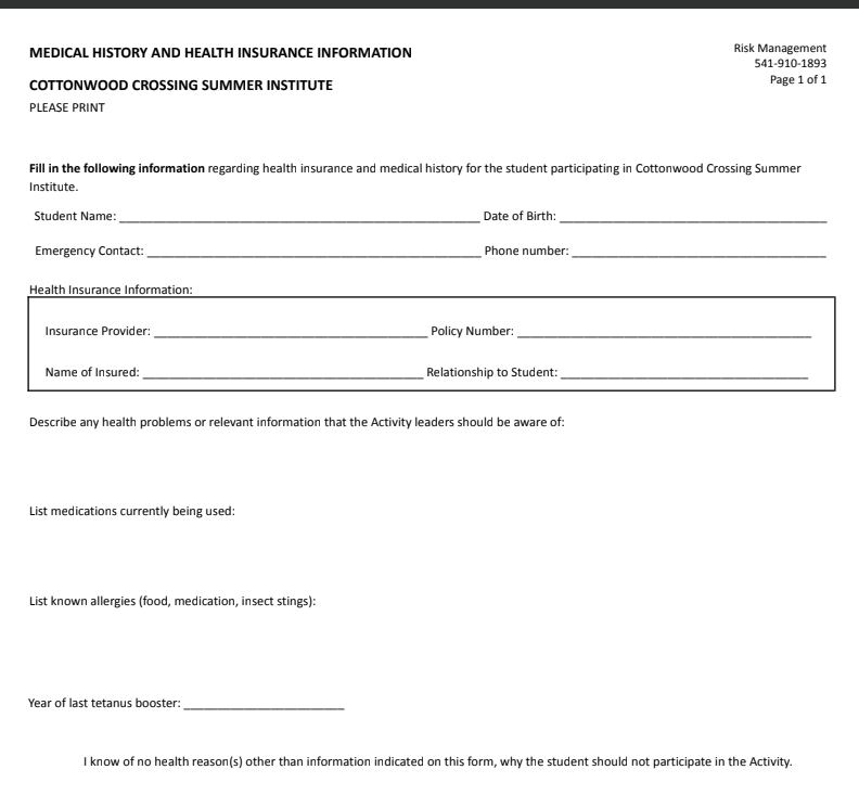 Please complete the attached medical history and health insurance form, as this information is essential to ensuring the safety, well-being, and appropriate medical care of all students participating in CCSI 2026. Download the form >